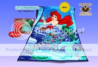 Selimut Little Mermaid merupakan model baru di tahun 2009 ini. Dengan komposisi bahan 100% Acrylic menjadikan selimut ini sangat halus dan nyaman untuk digunakan.